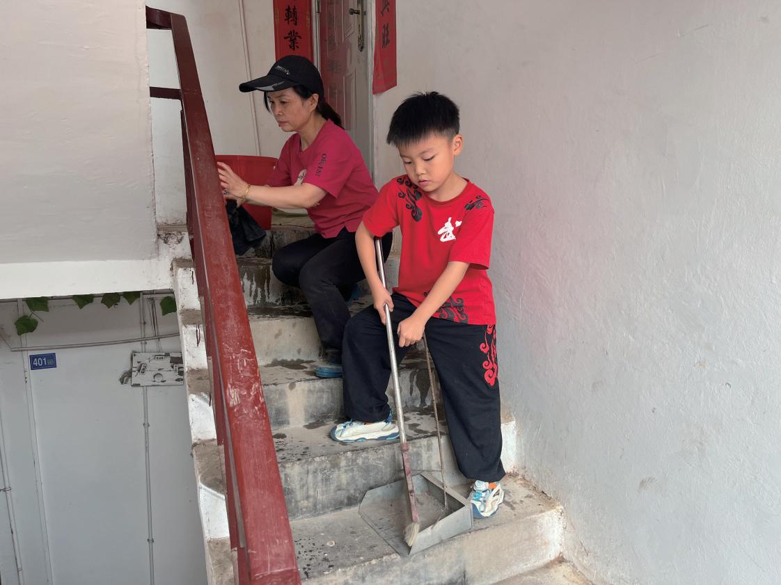 去年初,黃石普降大雪,石愛心一大早帶著鐵鍬趕到樓棟,先鏟除積雪確保通行,再打掃衛生。周末兒子放假時,她擔心孩子獨自在家不安全,便帶著兒子一起勞動。懂事的吳思遠也拿起掃帚幫忙,母子倆協作的場景成為樓棟里的溫馨風景。